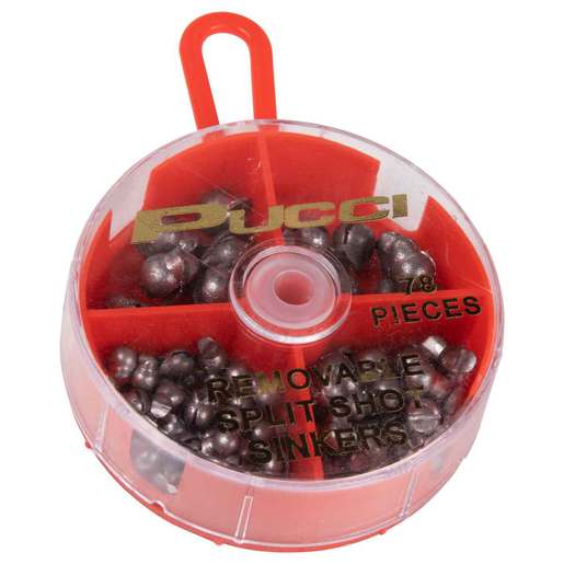 P-Line Removable Split Shot Sinker Assortment - 78 pcs. 36 each of size BB, 28 each of size 3/0, 8 each of size 7, 6 each of size 5. 124 pcs. 60 each of size BB, 40 each of size 3/0, 14 each of size 7, 8 each of size 5, 4 each of size 4.