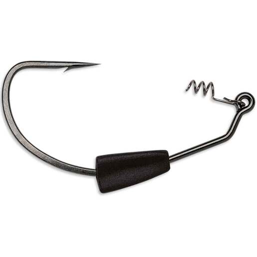 VMC HDWSB Heavy Duty Weighted Swimbait Hook - Pre-weighted design imparts just the right action to you swimbaits and eliminates the hassle of working with alternate weighting methods. Custom built for working swimbaits in open water and in cover, the Black Nickel Extra wide gap hooks feature a tapered locking spring that securely holds baits in place cast after cast, extending the life of your soft plastics. Spring design allows angler to easily add or remove bait without damage. Fixed Weight Position for Optimal Balance Extra Wide Gap Tapered Locking Spring Securely Holds Bait In Place Cast After Cast Easily Add or Remove Bait Without Damage IKE APPROVED