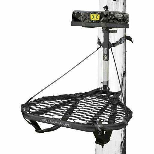 Hawk Mega Combat Hang-On Treestand - Featuring the same rock-solid steel construction as the Combat, the Mega Combat steps up with a massive 24in x 30in platform. Like the Combat, the platform is welded at all contact points to create a solid one-piece design. Tree Digger teeth ensure wobble-free performance and the premium Teflon washers keep squeaks from ruining your hunt. Hawk's ultra-comfortable seat features four layers of foam including a weather-resistant top layer over pressure-point-relieving memory foam. The seat angle is adjustable as well for increased comfort and stability. Backpack straps included. All Hawk stands are tested to TMA standards and include a full-body safety harness.