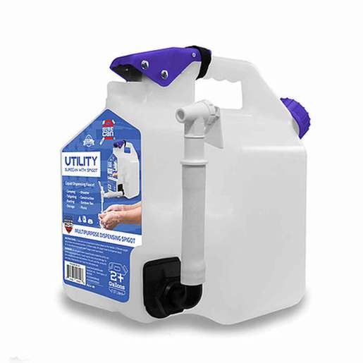 SureCan Utility 2 Plus Gallon Spigot Portable Water Station - SureCan designed the Utility SureCan with Spigot to be the most versatile all-purpose water jug on the market. Built with our innovative bottom feed technology and legendary toughness, the rotating spigot provides a fast convenient dispensing experience that is unmatched! 12.12in H x 9in W x 13.1in D Weight empty: 2.9lbs Simply fasten the Velcro strip to the thumb button and you're ready to go Rotate the spigot down 90° for a convenient dispensing experience When done, rotate the Spigot back into the resting position for storage and transportation Drinking water Washing hands Rinsing food or objects Filling pet water bowls BPA FREE Portable for on the go use Hands-Free Washing Easy To Use Durable Design Hand Grips At The Bottom Ease of Use
