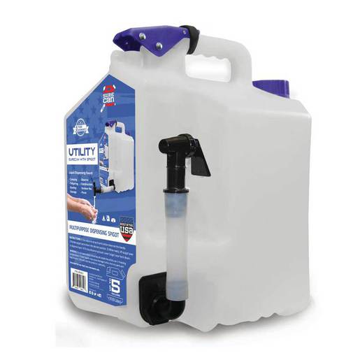 SureCan Utility 5 Gallon Spigot Portable Water Station - White - SureCan Utility 5 Gallon Spigot Portable Water Station - SureCan designed the Utility SureCan with Spigot to be the most versatile all-purpose water jug on the market. Built with our innovative bottom feed technology and legendary toughness, the rotating spigot provides a fast convenient dispensing experience that is unmatched! 15.61in H x 10.24in W x 13.1in D Weight empty: 3.9lbs Simply fasten the Velcro strip to the thumb button and you're ready to go Rotate the spigot down 90° for a convenient dispensing experience When done, rotate the Spigot back into the resting position for storage and transportation Drinking water Washing hands Rinsing food or objects Filling pet water bowls BPA FREE Portable for on the go use Hands-Free Washing Easy To Use Durable Design Hand Grips At The Bottom Ease of Use
