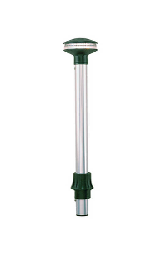 Perko White All Round Reduced Glare Pole Light - 48in Inland Series The Perko White All Round Reduced Glare Pole Light is the original "Reduced Glare" light. This design helps preserve night vision. In addition, since the amount of light wasted outside of the visibility zone is greatly reduced, this light does not attract as many bugs. The Perko White All Round Reduced Glare Pole Light is certified for use on power driven vessels under 20 meters in length. Stow-A-Way Plug-In Pole Clear Fluted Lens Black Polymer Top and Collars Contemporary Styling Gold Plated Contacts 2-Mile (USCG 2nm) Certified Technical Information: Collar: Locking Voltage: 12 Volt (Bulb Included) Wattage: 9 watts Amperage: .69 amps Pole: 3/4in Diameter Anodized Pole Rake: 0° Fits Bases: 1045 & 1047 (2 Pin) 48in long