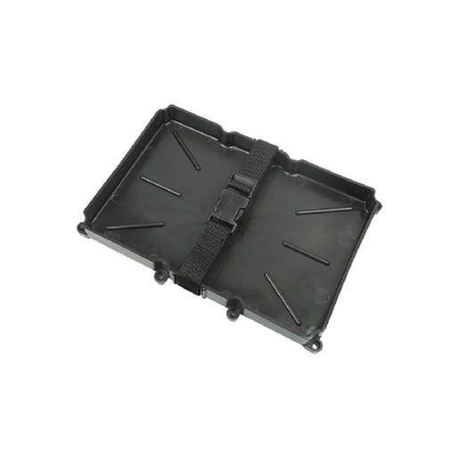 SeaChoice Battery Tray with Strap - The Seachoice Battery Tray with Strap is compact to conquer tight spaces and is resistant to gasoline, oil, acid and most chemicals. This battery tray meets all NMMA requirements. Recessed mounts and fasteners - no tabs Poly strap with quick-release buckles