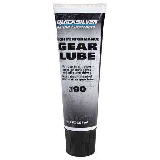 Quicksilver High Performance Gear Lube Marine Accessory - 8oz The Quicksilver High Performance Gearcase Lube Marine Accessory outperforms automotive gear oil in marine applications because of its specialized additive package design. For use in all lower units on outboards and all stern drives. This lubricant is the most recommended OEM marine gear lube. Continued use of this gear case lubricant will: Provide maximum protections against excessive wear - even in water Prevent corrosion and pitting Extend the life of the gear The Quicksilver High Performance Gear Lube Marine Accessory is recommended for use in marine gear cases with marine engines above 75 HP. SAE 90