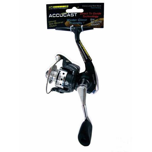 HT Enterprises Accucast Spinning Infinite Anti-Reverse Ice fishing Reel - HT spinning reel engineered specifically for ice fishing applications. Extended neck Infinite Anti-Reverse