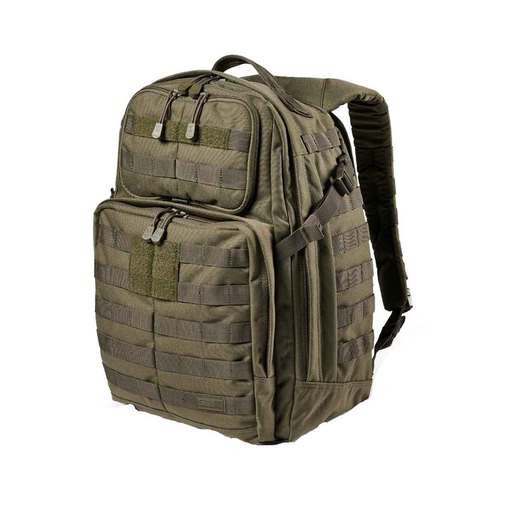 5.11 Rush24 2.0 37L Backpack - Ranger Green - One of the best selling packs just got better. This works just as well as an urban go-bag as it does going off the grid. There is an added pad for your laptop or other elecronics, increased size of eyeware storage, and dual internal slip pockets with a hidden concealed carry pocket. The large ammount of storage area allows you to compartmentalize your essential gear right where you need it. Excellent universal pack. High Strength, Water Repellant 1050D Nylon Main Compartment: 20in x 12.5in x 8in Front Pocket: 12.5in x 11in x 2in Total Capacity: 37 Liter