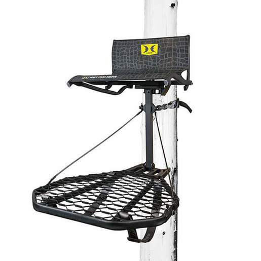 Hawk Cruzr Hang-on Treestand - Extreme comfort, rock-solid & easy-to-hang when paired with the CRUZR tree bracket. The MeshComfort Lumbar Seat conforms to your body & offers all-day comfort & spinal support. A 24in W x30in D platform that's welded at all contact points to create a rock-solid, one-piece design. Silent, over-molded attachment hooks and premium Teflon washers ensure no-noise, no-squeak performance while the oversized heavy-duty platform cables and Tree Digger teeth provide an added level of security and stability. Optional use with CRUZR tree hanging bracket offers quick, safe install & removal and the potential for multiple stand locations. Stand Weight: 22-LB Seat Size: 21in W x 16in D x 10in H Platform Size: 24in W x 30in D Construction: Steel Capacity: 300lbs