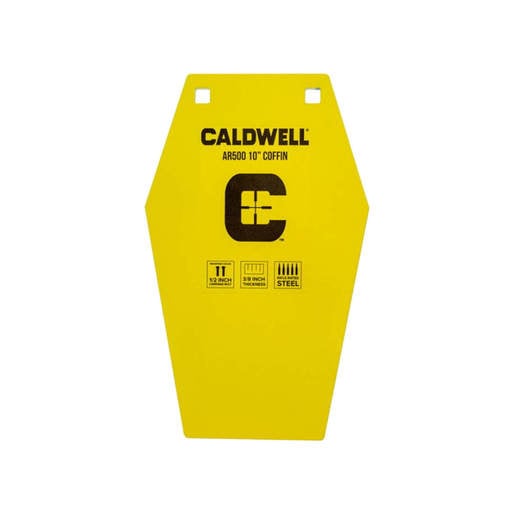 Caldwell AR500 10in Coffin Steel Target - Caldwell's bright, easy-to-see targets are ideal for competition, training, and recreational use. Made of AR500 hardened steel, these targets can withstand thousands of rounds. These targets are rated up to a 3000 FPS impact velocity and a 3500 FT LBS impact energy. Rated Up To 3,500 FT LBS Impact Energy Rated Up To 3,000 FPS Impact Velocity 3/8in Through Hardened AR500 Steel 13in Long x 8in Wide x 0.4in Deep Powder Coated Finish