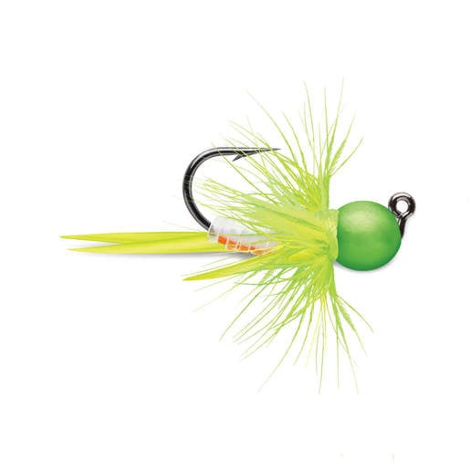 VMC Tungsten Bullfly Ice Fishing Jig - Set the hook and hold on, the rodeo is in town! The new VMC Tungsten Bullfly Ice Fishing Jig has a longer & bulkier body with goose feather tail and wings. Tungsten allows for a smaller presentation than lead weight equivalents and drops fast to get to those hungry fish as they feed. The exclusive VMC Power Gap hook offers a 5% wider gap than traditional jig hooks for a high-efficiency hooking rate. The precision balance is amplified by a 90° hook eye which ensures the optimal horizontal position, maintaining the perfect strike angle! Colors are offered in a variety of metallic and Ultra Glow colors with up to 15 minutes of continuous charge. 1/16oz - #8 Hook 1/32oz - #10 Hook 1/64oz - #12 Hook