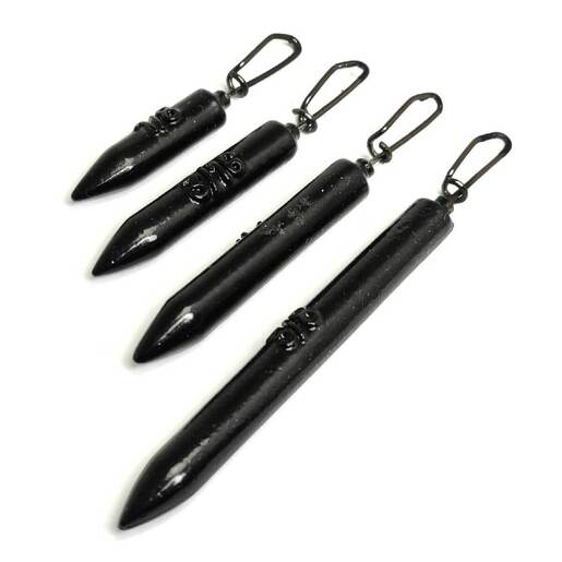 Gamakatsu Gika Rig Hook Weight - Gika Rig weights attached directly to the Gika Rig eye via a solid ring. The weight features a snap that allows anglers to quickly change the size of the weight when the situation calls for it and is painted black for stealthy presentations. The weight size is permanently stamped into the side of each weight making it easy to identify when it’s time to make a change. Changing weights controls the depth and drop speed of the bait adding to the rig’s versatility.