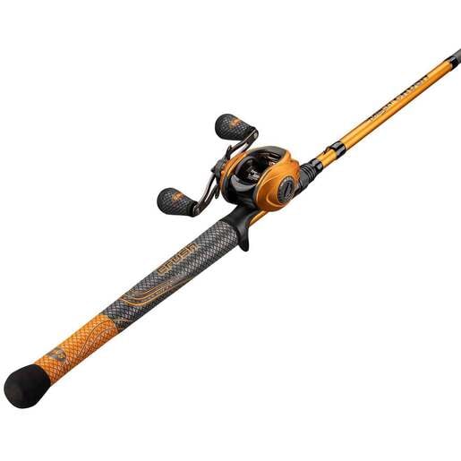 Lew's Mach Crush SLP Baitcast Casting Combo - The Lew's Mach Crush SLP Baitcast Casting Rod and Reel Combo is built on IM8 graphite blanks with nano technology, stainless steel guides with titanium oxide inserts, Lew’s new Full Contact reel seats and full-length Winn Dri-Tac handles. These combos are finished with a beautiful metallic orange butt section and raw graphite upper. Reel Features: 10 bearing system with stainless steel double shielded ball bearings Zero Reverse® one-way clutch bearing One-piece graphite frame with graphite sideplates Multi Setting Brake system (MSB) Zirconia line guide Carbon fiber drag system Speed Lube® for exceptional smoothness and performance in all weather conditions High strength solid brass Speed Gears®, cut on precision Hamai CNC gear hobbing machines • 95mm bowed anodized aluminum handle with Winn® Dri-Tac knobs Anodized aluminum 32mm spool Rod Features: Premium IM8 graphite blank with nano technology Stainless steel guides with titanium oxide inserts Full Contact reel seats for increased blank contact Full-length Winn® Dri-Tac handle Patented "No Foul" hook keeper