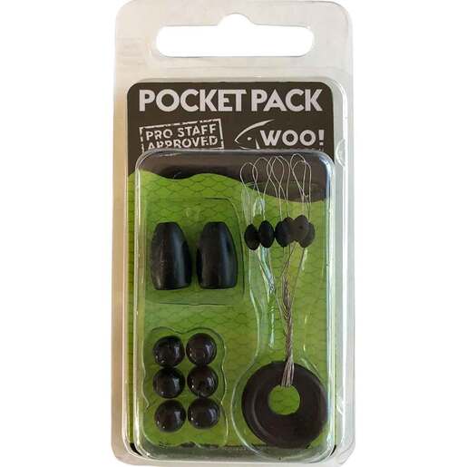WOO! Tungsten Pocket Pack Sinker - WOO! Tungsten's POCKET PACK! It's everything you need to get rigged up to flip and it fits in your pocket! 2 - 1/4 oz Tungsten Flipping Weights 6 - WOO! Beads 6 - WOO! Stops