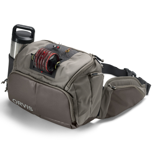 Orvis Guide Hip Pack Tackle Waist Pack - Keep your fly-fishing tools tidy and enjoy unobstructed casting with the Orvis Guide Hip Pack. For those who love an unencumbered feel while fly fishing, whether a guide or hardcore angler, the Orvis Guide Hip Pack offers 9 liters of capacity and a highly innovative design to please any organizational perfectionist. 100% recycled ECO CORDURA Tippet Whippet recessed docking station with tippet bar included 9 liters of capacity Main body storage pocket with fly patch top and internal features Smaller front zippered pocket with internal features Two side panel pockets with hidden net scabbard Interchangeable neck strap and shoulder strap with docking stations