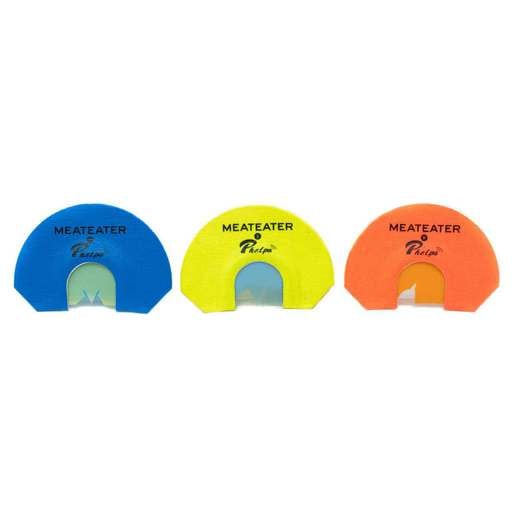 MeatEater by Phelp Steven Rinella/Janis Putelis/Choice Diagram Turkey Call - 3 Pack - Steven Rinella Jake Brake: Using a combo-cut reed, this turkey call achieves the raspy sounds of an old hen while also retaining the ability to soft-talk. This call has been the easiest for Steve to master and has become his absolute go-to. It’s sure to give you more confidence with a mouth call as well. Volume level is medium. Janis Putelis Latvian Eagle: Janis’ friend and turkey whisperer, Guy Zuck, introduced him to the “chunk-cut reed.” It allows you to get loud and raspy with the overhanging reed but also make a very clean note with the opposite side of the call when you need it. Janis often uses this call as a locator to make extremely loud cuts and yelps. Thicker latex creates a longer lasting, sturdier call that stands up to many high volume calling sequences. Volume level is medium to loud. MeatEater’s Choice Loud and Clear: The hybrid V-cut design of this call is very user friendly, producing medium-volume raspy sounds with ease. The perfect tone and note quality of this diaphragm rounds out the MeatEater collection, covering all the bases. Volume level is medium. Includes 3 Calls: Steven Rinella Jake Brake, Janis Putelis Latvian Eagle, And MeatEater's Choice Loud And Clear