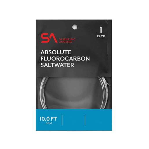 Scientific Anglers Absolute Flurocarbon Saltwater Leader - The Scientific Anglers Absolute Flurocarbon Saltwater Leader boasts a 15% higher wet knot strength compared to previous materials and features incredible clarity and abrasion resistance. The new paper-based leader packaging is now 100% recyclable. All materials, inks, and window are fully biodegradable to protect streams and reduce the environmental footprint. Please don't litter. 100% Fluorocarbon for stealthy presentations Abrasion-resistant 10ft length for saltwater species