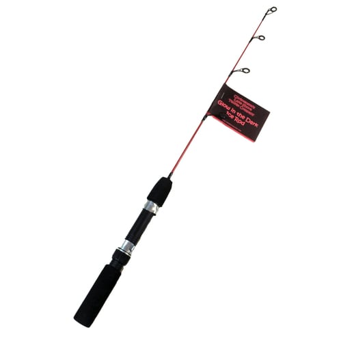 Lakeshore Tackle Glow Ice Fishing Spinning Rod - This glow in the dark ice fishing spiining rod is lightweight and easy to take on the ice. 24in Comfortable grips Glow in the dark