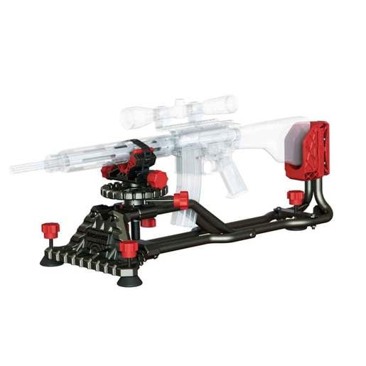 Birchwood Casey Alpha Shooting Rest - Keep your gun stable and secure with this sturdy and adjustable shooting rest. Rigid Steel Frame Non-Slip Rubber Stock Rest 35lb Total Weight, Integrated Front Weight Front Site: 2in Windage Adjustment 3.5in Elevation Adjustment 4.25in Adjustment For Various Rifle Sizes Adjustable Leveling Feet Bullseye Bubble Level Fits Rifles With Barrel As Short As 7.5in Ambidextrous Controls Butt Stock Shoulder Rest Low Profile Design For Prone Shooting