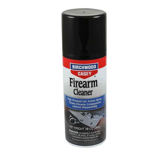 Birchwood Casey Firearm Cleaner - 10 Ounces - Firearm aerosol cleaner uses a high-pressure spray to clean metal surfaces fast, with a quick drying time that leaves no residue. It's a safe, easy and effective way to clean your firearm thoroughly. Cleaner For Blueing Or Browning Quick And Safe