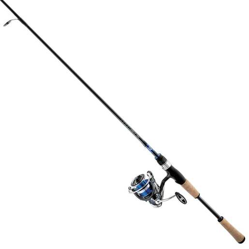 Daiwa US Legalis LT Rod and Reel Spinning Combo - This is not your ordinary combo but two quality components combined to form a smooth casting and operating rig. Designed for fresh water species like Bass, Stripers, Walleye and Catfish or salt water species like Redfish, Snapper, Trout and Striped Bass. It is well suited for both Fresh Water or Light Saltwater. The Lightweight Graphite Blank is sensitive to the bite yet has a backbone that can move larger fish. The 5 Foot to 9 Foot Rod Lengths offer choices for a variety of different tactics and techniques. Light and Tough Guides will hold up to the toughest abuse anglers can dish out. The Matte Black and Blue Metallic Finish makes for a sharp looking rod. The rod is matched to the new Legalis LT spinning reel, a workhorse reel with state-of-the-art features and a proven Daiwa pedigree. The Carbon Light Body and Air Rotor is constructed from a Zaion-V material. The Automatic Tournament Drag will stop the toughest gamefish. A Machine Cut Handle makes a strong connection with the main Digigear. If you are searching for a combo of the highest quality, and one designed for a more expert fisherman, make a cast with a Legalis LT PMC and experience the best features and functions that define Daiwa.