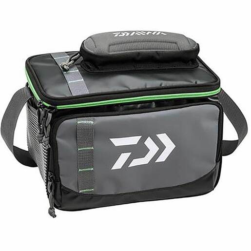 Daiwa D-Vec Vinyl Soft Tackle Box - The 360 Vinyl Tackle Box is ideal for short trips, the tackle box holds Two 360 Daiwa Boxes for an ample selection of tackle. It is constructed from a Vinyl Material that is attractive yet rugged and resists water. The New Fresh Look with the Daiwa logo is both eye catching and a standout. A handy Sunglass Holder keeps your glasses protected and handy. Sewn Stow Strap allows for attaching additional gear. Roomy Front Pocket provides additional storage. Clear Under-Lid Pouch holds hooks and leaders. The new 360 Vinyl Tackle Box is a value priced, smart, functional soft tackle box ideally suited for your shorter fishing excursions. Two 360 Daiwa Boxes Vinyl Material Fresh New Look Eye-Catching Stand out Sunglass Holder Sewn Stow Strap Roomy Front Pocket Clear Under-Lid Pouch