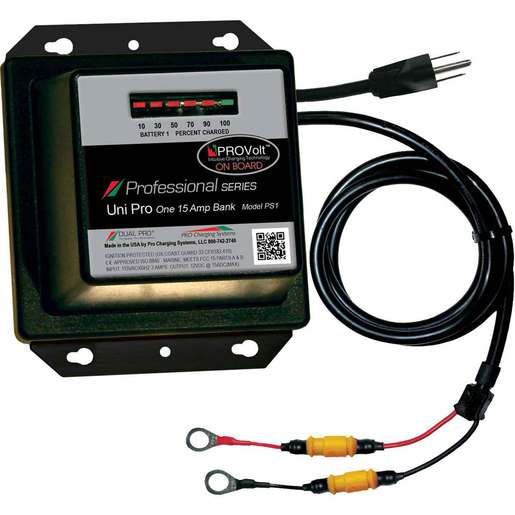 PRO Charging Systems Professional Series Battery Charger Electric Motor Accessory - The Professional Series chargers have set the standard in the marine industry for more than a decade. They are known as the safest, most reliable, and best performing battery chargers in the industry. Across a broad range of fishing and recreational boats, Pro Charging Systems keeps boaters on the water longer while extending the life of their batteries. Dual ProTM charging technology has been and continues to be the choice of over 50 boat manufacturers and professional fishermen on the B.A.S.S. and FLW tournament circuit. Designed for use on land and in fresh and saltwater A "green charger" Approved for Wet Cell and AGM batteries Models also available for Gelled Electrolyte batteries Fully automatic and totally waterproof Independent outputs Multi stage charging Zero spark technology Battery maintenance mode On-board diagnostic codes Temperature compensated Advanced microprocessor controlled Battery systems available: 12V - 48V LED lights indicate the state of charge Reverse polarity protected No installation restrictions FCC Parts A & B interference compliant DC charge cables - 5ft AC power cord - 3ft Approved and meets ISO 8846 Marine standards Ignition protected (US Coast Guard 33 CFR 183.410)