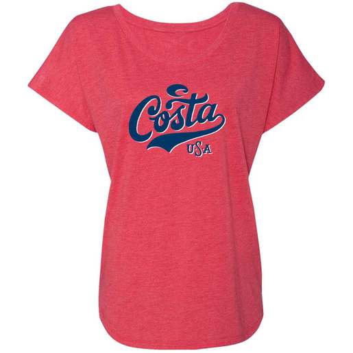 Costa Women's Americana Script Short-Sleeve Shirt - This flowy top is designed for comfort. Dolman sleeves Graphic screen print on front 50% Polyester/25% Ring-Spun Cotton/25% Rayon. 4.3oz, Tri-Blend Women's Cut Style: FQA500119493
