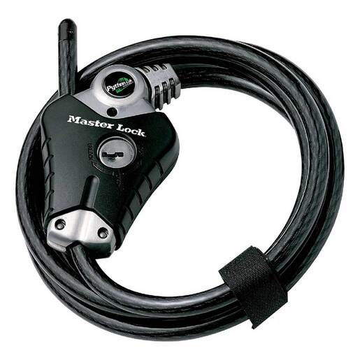 Master Lock Python Adjustable Locking Cable - 6ft x 3/8in Black - Adjustable Locking Cable 6ft (1.8m) long and features 3/8in (10mm) diameter braided steel for maximum strength and flexibility. The protective vinyl coating protects against scratches. The rekeyable wafer cylinder offers maximum pick resistance. The rust resistant lock and vinyl coated cable provide superior weather and scratch resistance. The Limited Lifetime Warranty provides peace of mind from a brand you can trust. Patented adjustable locking mechanism holds cable tight at any position for perfect fit Braided steel for strength and flexibility Cable end threads through places other cables cannot Rekeyable wafer cylinder for maximum pick resistance. Can be keyed-alike to any standard M1 key cut Rust resistant lock and vinyl coated cable for superior weather and scratch resistance Strap holds excess cable for compact storage Color: Silver & Black BEST USED FOR: OUTDOORS Bike Motorcycles, Mopeds, & Scooters Tools, Job Boxes, & Gang Boxes