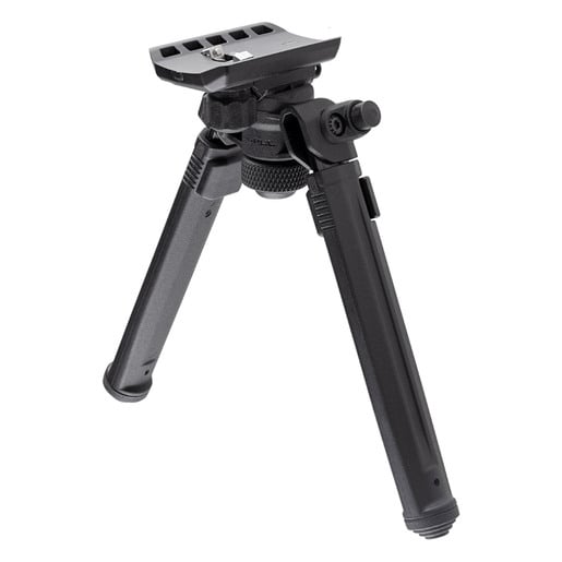Magpul QD Sling Stud Bipod - The Magpul Bipod – Sling Stud QD offers serious strength and versatility at a price that provides unmatched value. The lightweight Mil-Spec hard anodized 6061 T-6 aluminum and injection-molded polymer bipod brings innovation in ergonomics, functionality, strength and value together. Its low-profile design conceals its internal mechanisms and hardware, smoothly brushing off snags and bumps. Optimized for rapid one-handed adjustments, the bipod quickly and quietly transitions between user configurations. In the shooting position, it is easily loaded with stabilizing forward tension without fear of failure or warping. Its aluminum and stainless steel components, along with its injection-molded reinforced polymer, ensure years of dependable performance and reliability, all while shaving weight. Leg extensions slide and lock securely with the push of a button on any of the seven half-inch spaced locking detents. The legs extend a full four inches, from 6.3in to 10.3in. An industry-exclusive 50° of total tilt is controlled by a glove-friendly knurled tool-less bipod locking knob located between the extended legs. Folded, the streamlined housing and legs fit neatly under the barrel and are just under 2.3in deep and 3.3in wide. Anodized surfaces and tight, precision tolerances mitigate squeaks and rattles. A soft rubber bipod locking knob cap is attached to the locking knob gives users a steady, non-marring forward rest while the bipod is folded. Additionally, its staggered soft rubber feet hold fast on a variety of shooting surfaces and are easily removed with a roll pin punch. Made In The USA Max Height: 10in Platform: AR-15, M4, M16 Versatile Legs And Feet