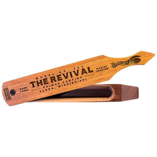 Primos The Revival Turkey Box Call - The Primos Revival is a long box that can be run loud or soft for prospecting or finishing a bird that last little bit. Loud high pitch long yelps and cuts for prospecting and locating birds is easy with the long paddle and trough. Also, use to finish off a bird with soft yelps or purrs. Long Box With Lots Of Volume When Needed Long Yelps From Sharp Highs To Raspy Lows Great Cuts