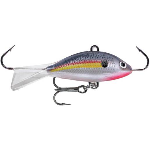 Rapala Jigging Shad Rap Ice Fishing Jig - The Jigging Shad Rap has more pronounced movement, with slow circle down action. Raising in a sharp "snapping" motion will cause the bait to circle faster. A quick "vibrating" motion can also be used at fixed depths to prompt strikes from otherwise lifeless fish. A deadly weapon under the ice, or fishing open water for suspended fish, also the right choice for working deep, submerged structure. Single reverse hooks on both ends with center treble and eyelet that can be tipped with your favorite bait. Zinc weighted, shad profile in natural, glow and UV color patterns. Large Shad Profile Precision Balanced Design Environmental Zinc Weighted UV and Glow Colors Single Reversed Hooks Center Treble and Eyelet Swimming Action Tail Fin