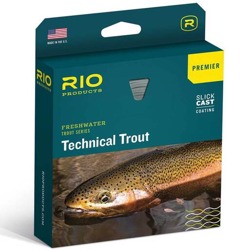 RIO Technical Trout WF Floating Fly Line - RIO’s TECHNICAL TROUT line features a long, fine front taper for the lightest of presentations and delicacy and is the ideal choice of line when fishing dry flies, nymphs, soft hackles and emergers to tricky eaters at distance. The line has a long head and back taper to increase loop control when carrying long lengths, and for making precise casts to rising fish, while the weight distribution makes it easy to turn over long leaders for technical feeders at range. This line is built with SlickCast, RIO's proprietary coating technology, which creates the slickest, most durable fly lines on the market. Lab tests show that lines built with SlickCast have the least amount of friction ever measured in a fly line. In addition, the line features MaxFloat Tip Technology, RIO's proprietary tip coating formula that floats more than twice as high as regular line tips, without any increase in diameter. This line is available in both Weight Forward and Double Taper options and is built with a supple core and coldwater coating. Long front taper turns over flies with delicacy and precision Extended head and back taper increases loop control when carrying long lengths of line Specifically designed to turn over long leaders for technical trout Built with RIO's exceptionally slick, durable SlickCast