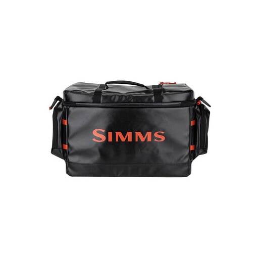 Simms Stash Soft Tackle Bag - A structured storage solution for everyday pursuits, thoughtfully designed with flexible organizational options - built to stash tackle, tools, and the nice-to-haves. Keep everything you need on deck. Rugged 1200-denier polyester ripstop material with TPU coating is water-resistant and durable. The top zipper accesses the main compartment with a large zippered mesh pocket under the lid. Spacious main compartment with adjustable internal divider holds up to 5 Plano 3700 boxes vertically oriented. The external organization features zippered spool and accessory pockets on either side with an additional stretch mesh stash pocket Laser-cut lash ports and webbing loops offer attachment of tools, as well as other Simms packs and accessories Structured seams and reinforced base ensure durable protection of contents Padded and removable shoulder strap and a burly rubber handle allow for multiple carrying options.