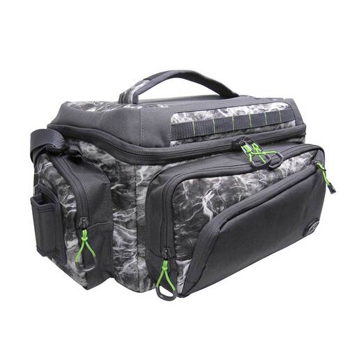 Evolution Outdoor Largemouth Mossy Oak Soft Tackle Bag - Make your fishing expedition a great experience with the EVOLUTION FISHING lineup! Our Evolution Fishing TACKLE BAGS featuring MOSSY OAK ELEMENTS Water Camo not only look awesome but provide the ultimate in functionality wherever you're fishing. With plenty of storage, you'll love the large mouth opening as it provides easy access. Organize all your gear & tackle while finding the perfect spot for your hooks & lures (includes 3 trays). Transporting your gear will be a breeze with the adjustable shoulder strap and padded carry handle. A plier holster is also included. Take your fishing adventure to a new level with one of the BEST TACKLE BAGS on the market. Durable 600 denier polyester Wide mouth opening for easy access Padded carry handle Gusseted exterior zipper pockets Zippered mesh pocket inside of the front pocket Rubberized mesh slip pocket on back Adjustable, padded removable shoulder strap