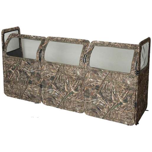 Avery Finisher Panel Blind - Realtree MAX-7 - Aluminum frame has adjustable top and large window ports on each panel. Adjustable width Hides up to 4 hunters comfortably