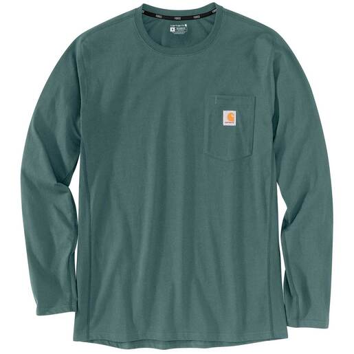 Carhartt Men's Relaxed Fit Midweight Long Sleeve Shirt - An everyday tee with Carhartt pride, this men's long-sleeve t-shirt keeps you cool and comfortable on the job or off. Midweight cotton jersey is sweat-fighting and fast-drying. Mesh side panels keep air circulating to help you stay cool when work heats up. A relaxed fit gives you room to move. Built with Force technology to wick sweat and dry fast FastDry technology keeps you cool for all day comfort Stain Breaker technology releases stains Flatlock seams for a smooth feel Raglan sleeves increase range of motion for less restriction Ventilated side panels Droptail hem for added coverage Left-chest pocket with pen stall Tagless neck label for a smooth feel UPF 25+ Style: 104617