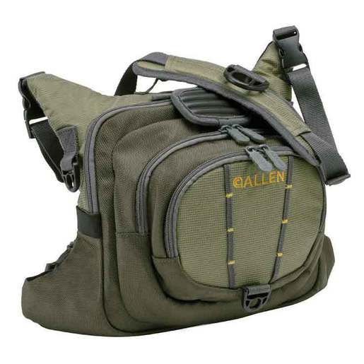 Allen Boulder Creek Chest Pack - Tie on new ties and work on your line with the zip down work station that is on the Boulder Creek Chest Pack by Allen. Store all of your gear and tools necessary to have a successful fishing trip in the multiple interior storage pockets and exterior pockets. Zip down work stationPadded neck strapExterior D-RingsHigh-Viz liningMultiple interior storage pocketsHolds up to 6 fly boxesHeavy duty molded zippers