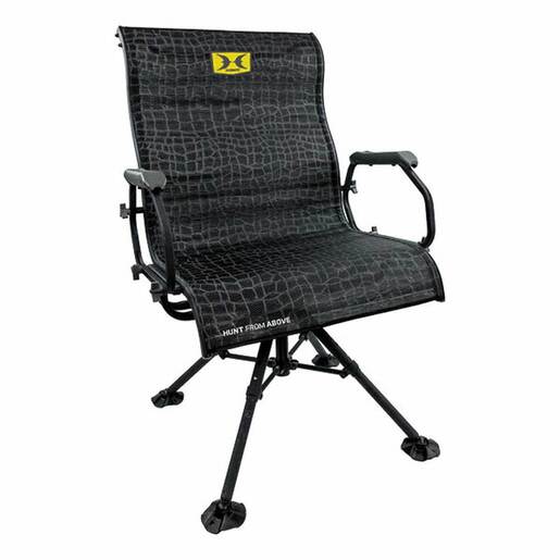 Hawk Big Denali Luxury Blind Chair - Extra-wide & Extra-comfortable - This is the chair for those looking for some extra space. An XXL MeshComfort Lounger chair with a contoured, high backrest provides un-matched comfort and is even paired with molded foam armrests. Swivel silently 360-degrees for any angle shooting. Adjust each leg independently to level out on uneven terrain. Swiveling, large "duck" feet on each leg provide added stability and keep the chair from sinking into soft ground. Steel tubing & powder coat finish provide long lasting usage. XXL Contoured Lounger Seat 360 Stealthy Spin All Terrain Stability Portable Legs