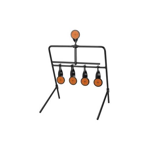 Caldwell Rimfire Resetting Target - Caldwell Resetting Targets are easily portable and create an interactive shooting experience that makes plinking and target practice fun. Made of heavy duty steel, these targets are built to last. The bottom row of targets swing up and out of the way when hit. Shooting the top target will reset the bottom row.