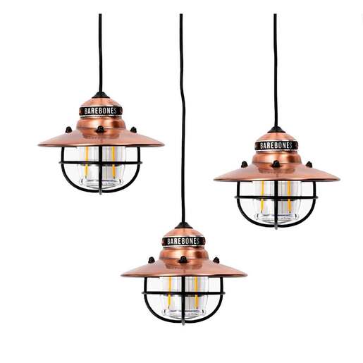 Barebones Edison Pendant String Lights Electric Lantern - Add illumination and ambiance whether you’re off the grid or in the heart of the city. The Edison String Lights make it simple to style your outdoor space. Three LED Edison lights connect by a single cord to make for easy hanging and styling. Connect up to two Edison String Light sets together for brighter appeal. Lights must be powered by an external USB power source. High: 250 lumens Low: 40 lumens Water- and rust-resistant powder-coated finish on steel components Dual-brightness LED Edison-style bulb Includes 3 carabiners for hanging 10 ft cable from power source | 4 ft between each light Connect up to nine individual Edison lights (Edison Pendant Light or Edison String Lights) using the integrated USBs