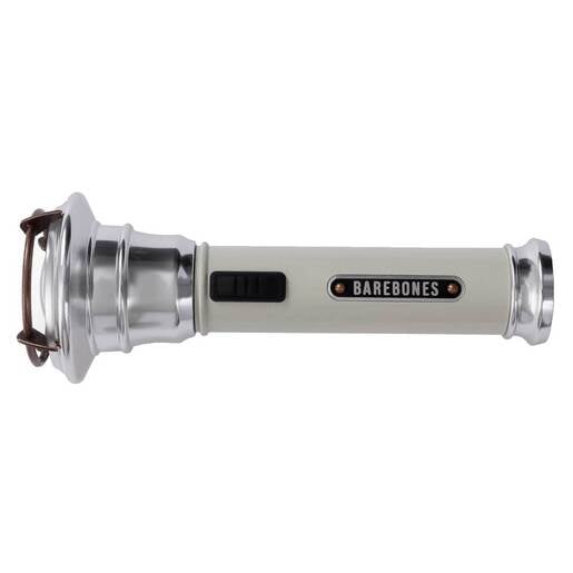 Barebones Vintage Full-Size Flashlight - Convenient everyday LED flashlight with a nod towards its vintage cousin. Cage styling with hammertone style texture paint gives a classic look with modern appeal. An additional hook on the bottom makes it easy to hang at eye level in the garage or tent. Perfectly sized to fit in your hand. Throw it in your bag or car for emergencies, or pack it while camping or hiking. Dual brightness LED bulb with telescoping light focus adjustment Aluminum and steel construction IPX4 water-resistant LED: 3 Watt LED Bulb Lumens: Low: 18±2 | High: 170±17 Color Temperature: 4000K Rated Voltage: 3.6V DC Input: USB-C charging cord: 5V, 2A USB Battery: Barebones specific Li-ion Battery 18650 | 2200mAh 3.7V 8.14Wh Run Time: Low: 15 hrs | High: 1.5 hrs Recharge Time: 3-4 Hours Items Included: 1 Vintage Flashlight 1 USB cable 1 Li-ion battery 18650