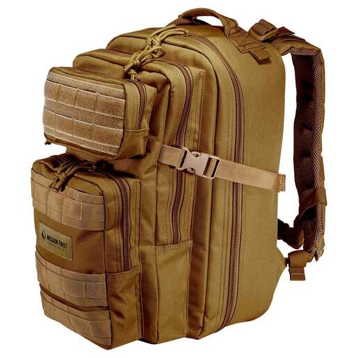 Mission First Tactical Warrior 30 Backpack - Coyote Brown - The Warrior 30 is a robust, yet compact backpack, designed for multipurpose use. Perfect as a bugout bag, vehicle bag or simply hitting the hiking trails. Made from 600 Denier Ballistic Nylon for outstanding durability. Outfitted with EVA back padding and thick shoulder straps for endless comfortable carrying. The Warrior 30 will carry your gear with ease. 30 Liter Interior Mesh Pocket Sunglass Compartment Padded Shoulder Straps Utility Pocket 600 Denier Ballistic Nylon ITW Buckles Nylon Velcro Backing PVC Backing 12 mm EVA pads MOLLE sections for expanded attachment options