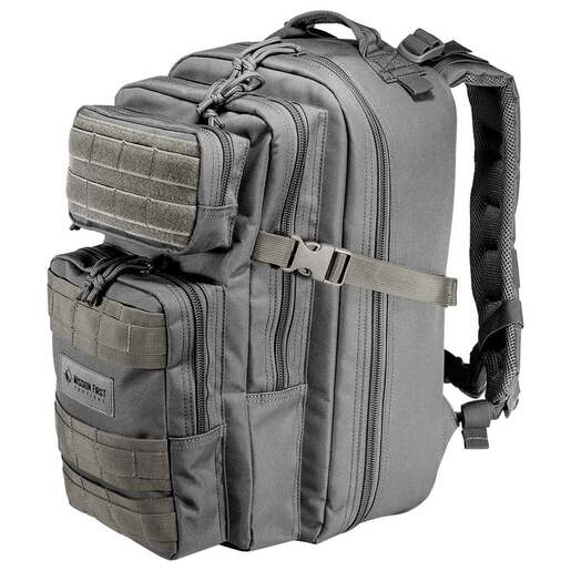 Mission First Tactical Warrior 30 Backpack - Wolf Grey - The Warrior 30 is a robust, yet compact backpack, designed for multipurpose use. Perfect as a bugout bag, vehicle bag or simply hitting the hiking trails. Made from 600 Denier Ballistic Nylon for outstanding durability. Outfitted with EVA back padding and thick shoulder straps for endless comfortable carrying. The Warrior 30 will carry your gear with ease. 30 Liter Interior Mesh Pocket Sunglass Compartment Padded Shoulder Straps Utility Pocket 600 Denier Ballistic Nylon ITW Buckles Nylon Velcro Backing PVC Backing 12 mm EVA pads MOLLE sections for expanded attachment options