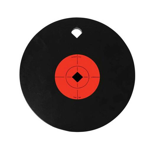 Birchwood Casey World of Targets 10in Single Hole AR500 Steel Gong - Birchwood Casey's World of Targets feature durable steel construction for years of fun and practice. The AR500 Gong is 3/8in thick with a 3-inch target spot and a hole for hanging so you can build your own range. It is rated for centerfire rifle and handgun use, and are made in the USA.
