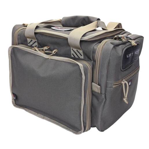 GPS Medium Range Bag - Rifle Green/Khaki - The Medium Range Bag is the ideal size for the handgun and long gun shooter. It features lift ports on each end for easy maneuvering. This range bag also has a visual ID storage system, special pockets for your other accessories, lockable heavy-duty zippers, and extra magazine storage in its front pocket.