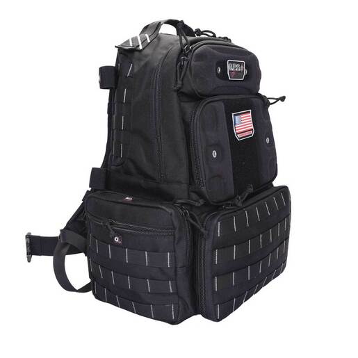 GPS Tactical Range Tall Backpack - Black - Tactical Range Backpacks have a Visual I.D. System for quick I.D. and access of gear. Specialized Pockets, Fine shooting glasses and custom molded ear pieces are protected in specially velour lined pockets. The backpack is taller than standard version which allows more room for additional ammo and supplies. The backpack features a Pull-out rain cover for sudden downpours and a Padded waist strap and Internal (Honeycomb) frame for load stability.