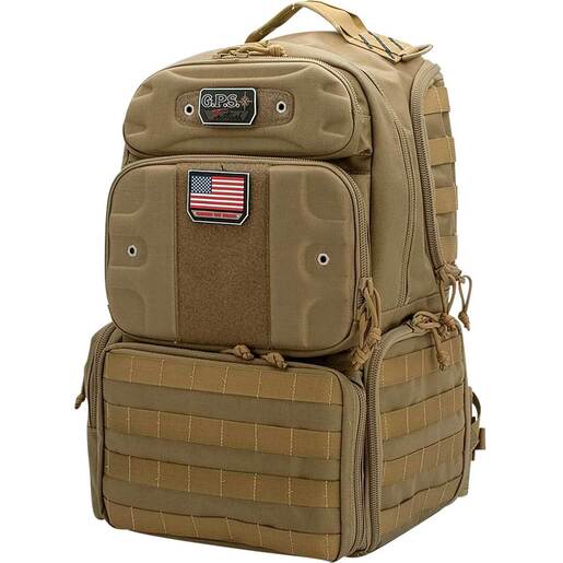 GPS Tactical Range Tall Backpack - Tan - Tactical Range Backpacks have a Visual I.D. System for quick I.D. and access of gear. Specialized Pockets, Fine shooting glasses and custom molded ear pieces are protected in specially velour lined pockets. The backpack is taller than standard version which allows more room for additional ammo and supplies. The backpack features a Pull-out rain cover for sudden downpours and a Padded waist strap and Internal (Honeycomb) frame for load stability.