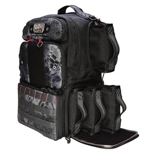 GPS Tactical Range Tall Backpack - PRYM1 Blackout - Tactical Range Backpacks have a Visual I.D. System for quick I.D. and access of gear. Specialized Pockets, Fine shooting glasses and custom molded ear pieces are protected in specially velour lined pockets. The backpack is taller than standard version which allows more room for additional ammo and supplies. The backpack features a Pull-out rain cover for sudden downpours and a Padded waist strap and Internal (Honeycomb) frame for load stability.
