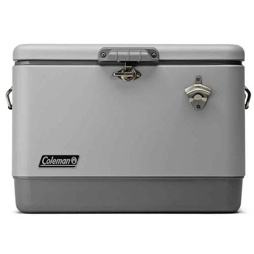 Coleman Reunion 54 Quart Steel Belted Cooler - How do you reimagine an icon that’s been in the family since 1954? Meet the Coleman Reunion 54 Quart Steel Belted Cooler, which has everything you love plus modern twists like a cool matte finish and an always-there, built-in bottle opener. Comfort-grip handles make it easier to carry out to the backyard tailgate, kids’ birthday party in the park, or family beach day. Extra guests show up? The Have-A-Seat lid can be used as an additional seat that supports up to 250 lbs. The built-in stainless steel bottle opener lets you pop open a cold drink at the tailgate with one hand while grabbing snacks with the other. Large enough to hold up to 85 cans, there’s plenty of drinks to go around and the cooler Keeps the Ice for up to 4 days in temperatures as high as 90°F. When the fun is winding down, the rustproof and leak-resistant channel drain offers no-tilt draining for easy cleanup. Modern matte powder-coated finish Steel construction that’s durable enough to last for years Comfort-grip steel handles are designed for portability, easy lifting and carrying Rustproof and leak-resistant channel drain offers no-tilt draining for easy cleanup Have-A-Seat lid supports up to 250lbs. Built-in stainless steel bottle opener is convenient for one-handed bottle opening Keeps the Ice up to 4 days in temperatures as high as 90°F Holds up to 85 cans