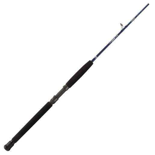 Temple Fork Outfitters Seahunter Saltwater Live Bait Casting Rod - Casting, jigging, trolling, kiting, or all the above in concert! Regardless of the demands, these high performance rods allow saltwater anglers to quickly respond to changing conditions and opportunities by offering a wide range of capabilities without the need to change gear. This series is perfect for competitive tournament teams and serious anglers fishing salt-borne techniques and species. The perfect power for live bait applications. The foundation of the Tactical Seahunter series are moderate-fast action blanks constructed with standard modulus carbon fiber material and a proprietary fiberglass scrim. The blanks are a midnight blue with metal fleck finish topped with braid- and saltwater-safe Fuji Concept Guides. EVA foam fore and rear grips. Fore grips are 7in long in a large diameter for comfort while fighting fish. Rear grips are rocket launcher friendly at 13inches in length and all models are equipped with anodized aluminum gimbals.