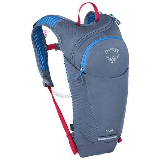 Osprey Moki 1.5 Liter Youth Hydration Pack - The Moki bike pack makes it a breeze for little rippers to stay hydrated on the go with an included Hydraulics LT 1.5L reservoir. Designed with the same features as Osprey's adult packs, the Moki offers a low-profile design and ventilated airmesh harness which provide a comfortable carry in a riding position. A front shove-it pocket and external zippered pocket keep small items organized while a blinker light attachment loop helps keep kids seen. Biking-specific features: A low-profile design and airmesh harness provide a comfortable carry while in a riding position, a reservoir offers on-the-go hydration and a blinker light attachment loop promotes safe riding. Reservoir included: Osprey Hydraulics LT 1.5L reservoir with quick-zip access and sternum strap magnetic bite valve attachment. Comfortable and stable carry: Lightweight airmesh-covered backpanel and harness create a comfortable carry and low profile for optimal stability. Front shove-it pocket Small external zippered pocket Loop for blinky light attachment (light not included) Quick-zip access reservoir sleeve with included Hydraulics LT 1.5L reservoir Backpanel Ridged airmesh-covered foam with center air channel for excellent ventilation Harness: Lightweight, ridged airmesh harness provides ventilated comfort Adjustable sternum strap with rescue whistle